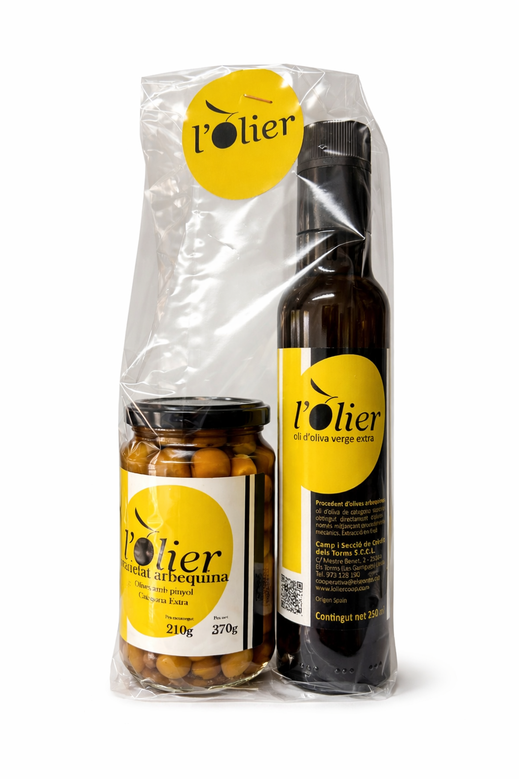 Ampolla d’oli d’oliva verge extra l’Olier 250ml i olives arbequines l’Olier 210gr